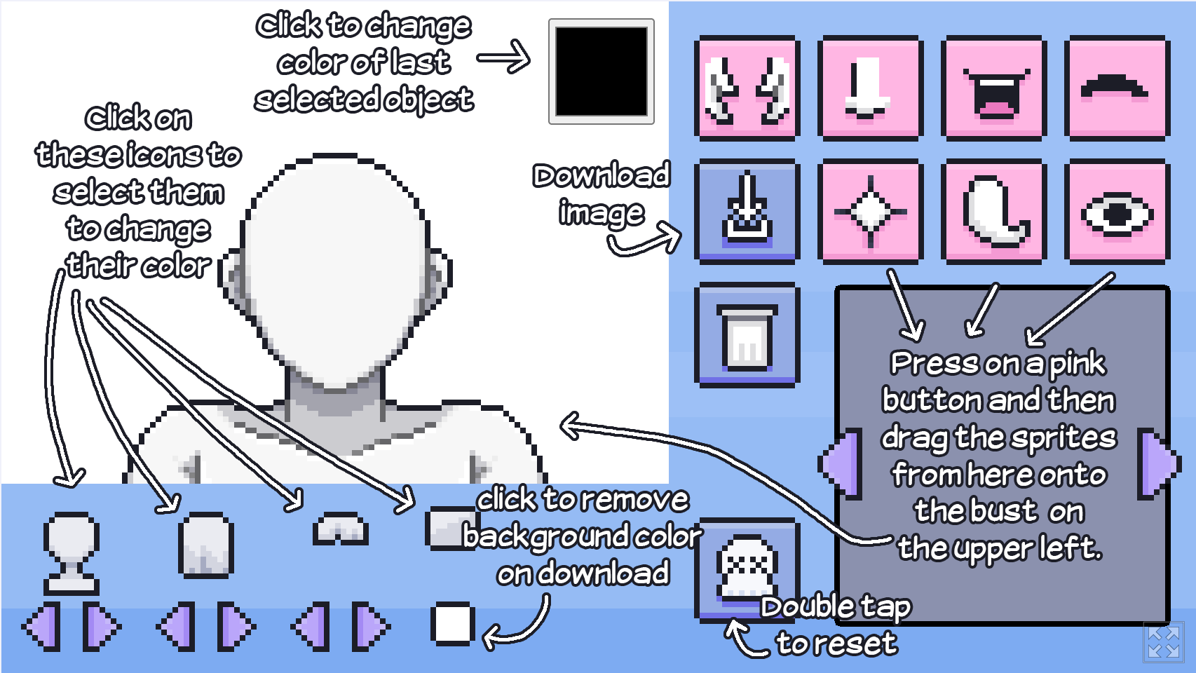 Please note that while the game can be played on mobile phones, many phones have really bad color tool pickers (example: firefox android app), which might make using this tool annoying. The downloaded image might also be the wrong size, which can cause issues. Using it on a laptop/desktop computer/tablet is recommended.